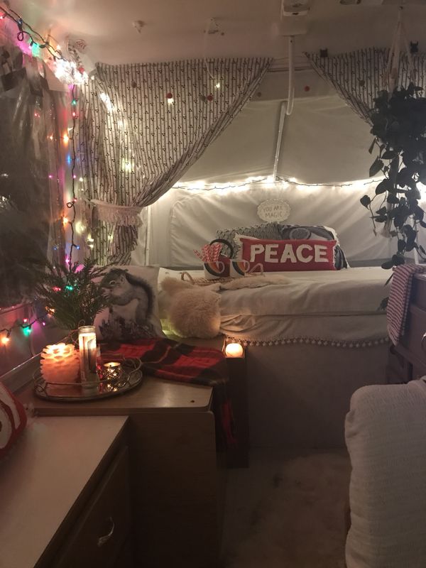 Pop up campers have canvas walls and screened windows. Thinking about getting a pop up camper? They also feature retractable roofs and plenty of usable interior space despite their small dimensions. While in transit or in storage, the camper is folded into a condensed package. After painting the entire interior of maisie, it was time to put up the curtains that we had made.